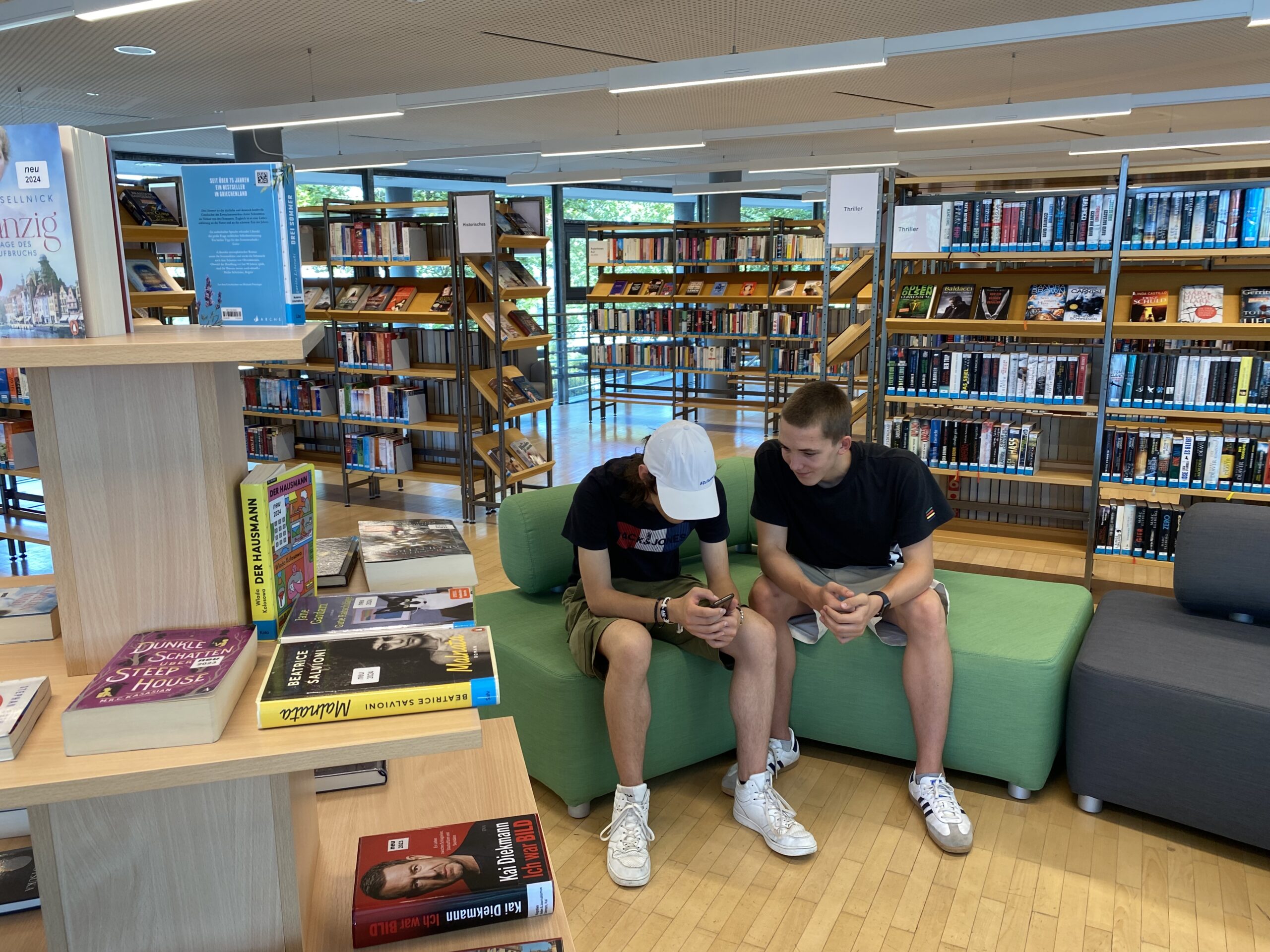 Am 10. Juli 2024 unternahm die Vorklasse der FOS Germering eine Exkursion in die Stadtbibliothek Germering. Um 12.00 Uhr wurden die Schülerinnen und Schüler dort von Frau Veronika Stöckl freundlich empfangen und zunächst durch die Bibliothek geführt. Dabei erfuhren sie, dass die Stadtbibliothek weit mehr als nur Bücher und Medien verleiht. Sie versteht sich als Lern- und Aufenthaltsort und bietet zahlreiche Sitzgelegenheiten zum Lesen sowie Arbeitsplätze, an denen man alleine oder in Gruppen lernen kann. Im Untergeschoss steht sogar eine spezielle LernBOXX mit Whiteboard zur Verfügung und es gibt Internetplätze mit Druckmöglichkeit. Eine kleine Cafeteria mit gemütlichen Sitzplätzen befindet sich im Obergeschoß. Am Ende der Führung waren die Jugendlichen sichtlich erstaunt, was die Bibliothek alles zu bieten hat. Anschließend machten sie mit einer Smartphone-App eine kleine Rallye durch das Haus, bei der sie unter anderem herausfinden mussten, wo welche Bücher zu finden sind und den Suchkatalog der Bibliothek zur Recherche nutzen konnten. Zum Abschluss erkundeten sie das umfangreiche Angebot auf eigene Faust, bevor es gegen 13.30 Uhr wieder zurück zur Schule ging.
