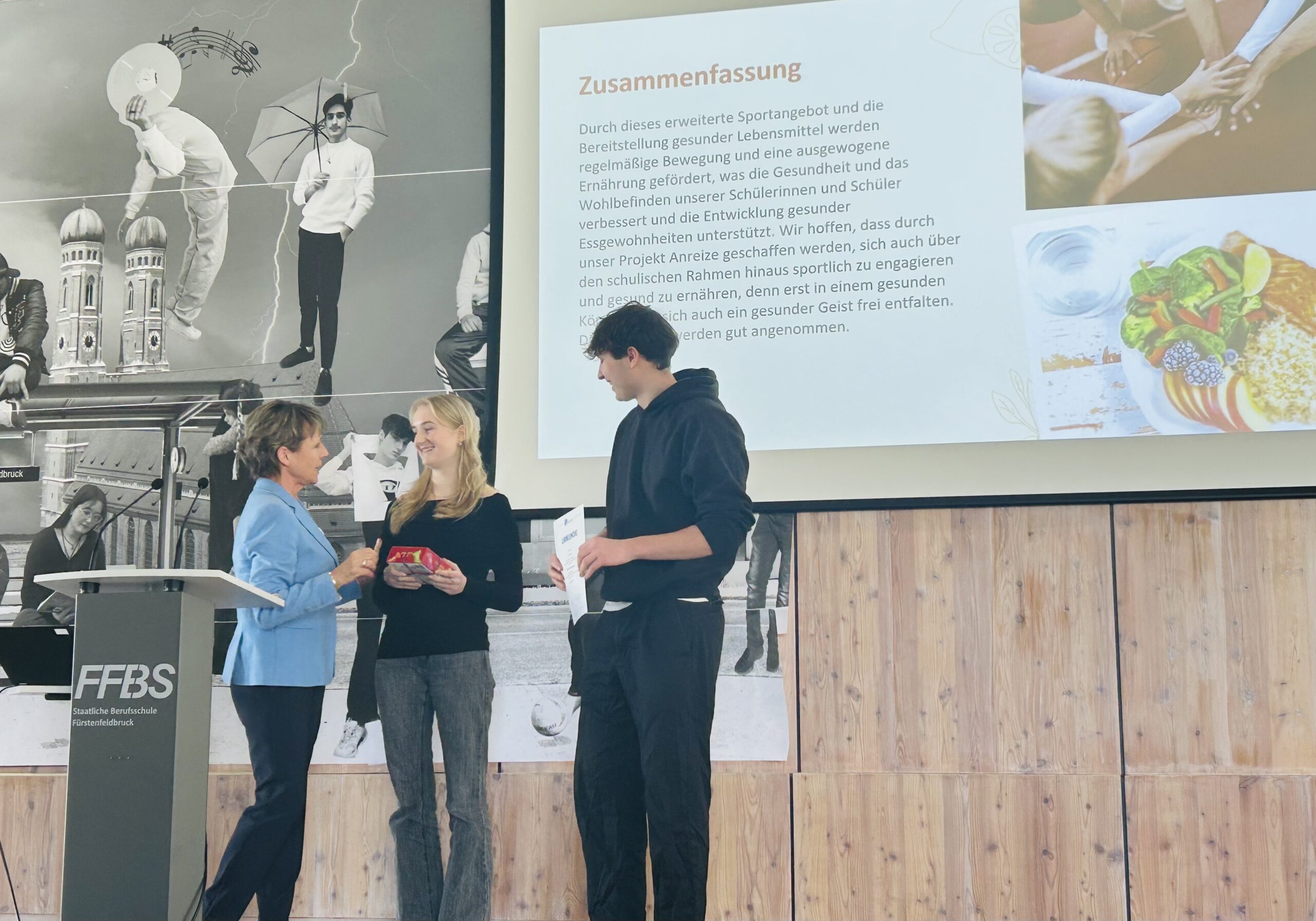Großer Erfolg für unsere Schule: Gemeinsam mit der Berufsschule Fürstenfeldbruck haben wir den ersten Platz beim Prämienprogramm der Landkreisschulen erreicht! Mit vielfältigen Projekten wie dem Drei-Ball-Turnier, der Sommerolympiade, der bewegten Pause, der Obst- und Gemüsekiste, Workshops zur gesunden Ernährung, dem Wahlfach Tennis, der Volleyball-AG sowie Seminaren zu gesundem Leben und Sport- und Körpertrends konnten wir punkten.