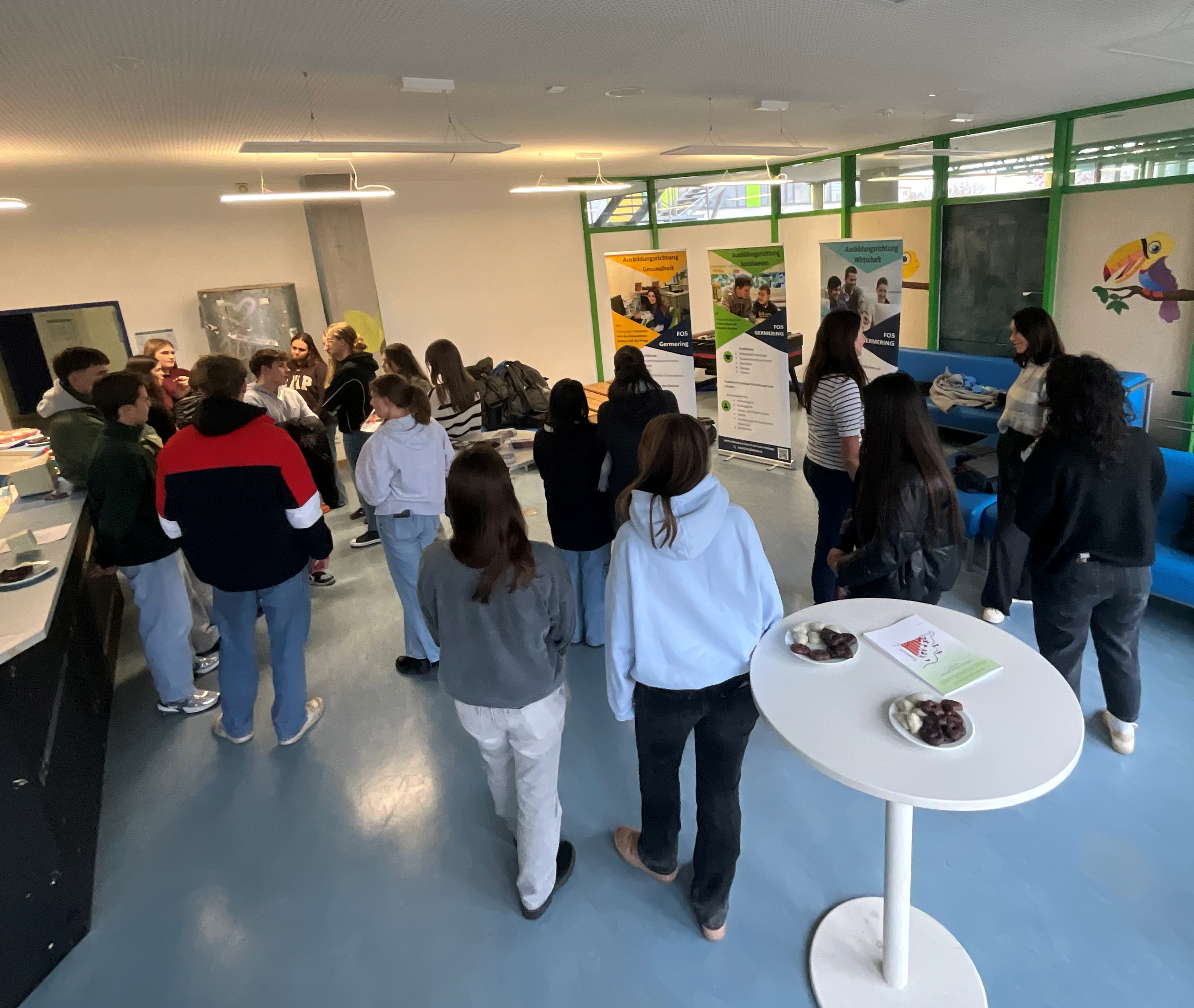 Bei Kuchen und Lebkuchen kamen die Teilnehmenden ins Gespräch und tauschten sich über verschiedene Themen rund um die FOS aus. Besonders gefragt waren Informationen zu den Zugangsvoraussetzungen und den unterschiedlichen Ausbildungsrichtungen, die an der FOS Germering angeboten werden: Gesundheit, Sozialwesen sowie Wirtschaft und Verwaltung. Die Schülerinnen und Schüler der FOS berichteten aus erster Hand über ihre Erfahrungen im Übergang von der Realschule zur Fachoberschule. Dabei schilderten sie sowohl ihre persönlichen Eindrücke als auch praktische Tipps, wie man den Wechsel erfolgreich gestalten kann.