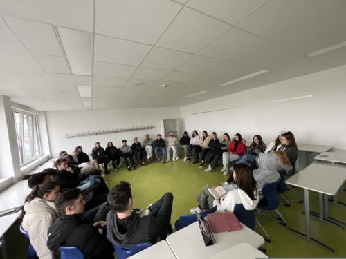 Im Rahmen der Leseförderung haben die Lehrkräfte der Deutsch-Fachschaft zum Thema „Krisen der Menschheit“ allen Schülerinnen und Schülern der 10./11./12. Klassen aus Büchern Ihrer Wahl vorgelesen. Im Programm standen: „Der Schwarm“ (F. Schätzing) – „Das Feuer: Tagebuch einer Korporalschaft“ (H. Barbusse) – „Im Westen nichts Neues (E.M. Remarque) – „Das Mögliche und die Möglichkeiten. Rede an Abiturienten“ (Juli Zeh) – „Müll“ (W. Haas) – „Verbrechen“ (Ferdinand v. Schirach).